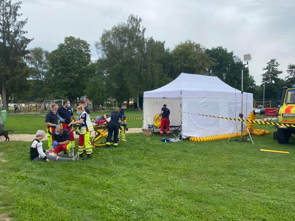 Insgesamt waren bei der Übung 160 Feuerwehrkammerad-innen, 30 Kräfte des Rettungsdienstes sowie 17 Verletztendarsteller beteiligt.