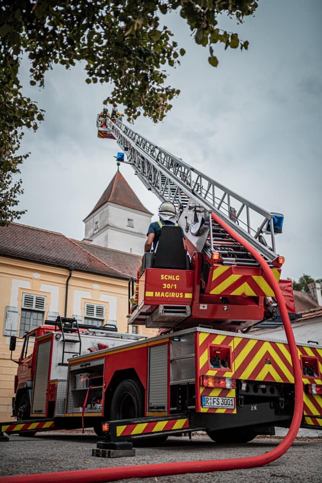 „Offener Dachstuhlbrand, Musikakademie Schloss Alteglofsheim, mehrere Personen vermisst“ lautetet der Übungsbefehl am vergangenen Samstagnachmittag für die Feuerwehren Alteglofsheim, Köfering, Hagelstadt, Thalmassing, Langenerling, Mintraching, Neutraubling und Schierling sowie die Unterstützungsgruppe Örtliche Einsatzleitung.