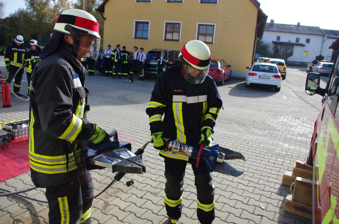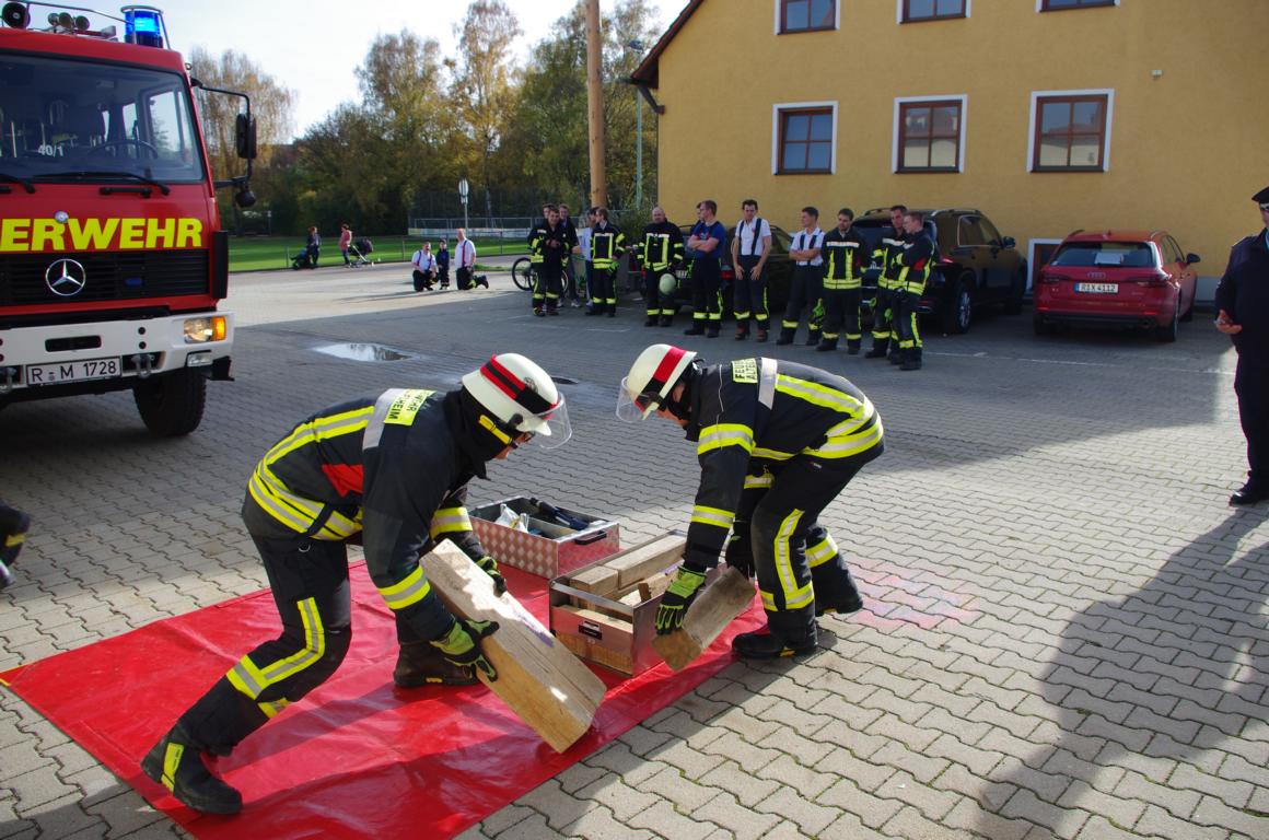 Bei strahlendem Sonnenschein und 19 Grad eher ungewöhnlich für Ende Oktober. 24 Teilnehmer unserer Feuerwehr legten unter den Schiedsrichtern KBI Hausler Willi, KBM Fenn Josef und KBM Hopfensperger Hans das HL Leistungsabzeichen ab. Mit zehn angebotenen Übungsterminen wurden die Teilnehmer durch unseren 1. Kommandanten Josef Steinberger auf das Abzeichen vorbereitet. Nicht nur der Korrekte Aufbau für den Hilfeleistungseinsatz wurde geprüft, sondern auch bei Gerätekunde- und Truppaufgaben mussten die Teilnehmer ihr erlerntes Wissen unter Beweis stellen. Mit Bravour und fehlerfrei haben alle drei Gruppen das Abzeichen bestanden. Im Feuerwehrhaus wurde den 24 Teilnehmern die Abzeichen verliehen. Abgelegt wurden sechs Mal das bronzene, vier Mal das silberne, fünf Mal das goldene, vier Mal das goldblaue und fünf Mal das goldgrüne Abzeichen. Nicht nur unser Kommandant dankte den Teilnehmern des Abzeichens für ihren Einsatz in unserer Wehr, sondern auch der erste Bürgermeister Herbert Heidingsfelder und KBI Hausler Willi. Anschließend wurde bei einer Brotzeit das Abzeichen im Feuerwehrhaus gebührend gefeiert.
