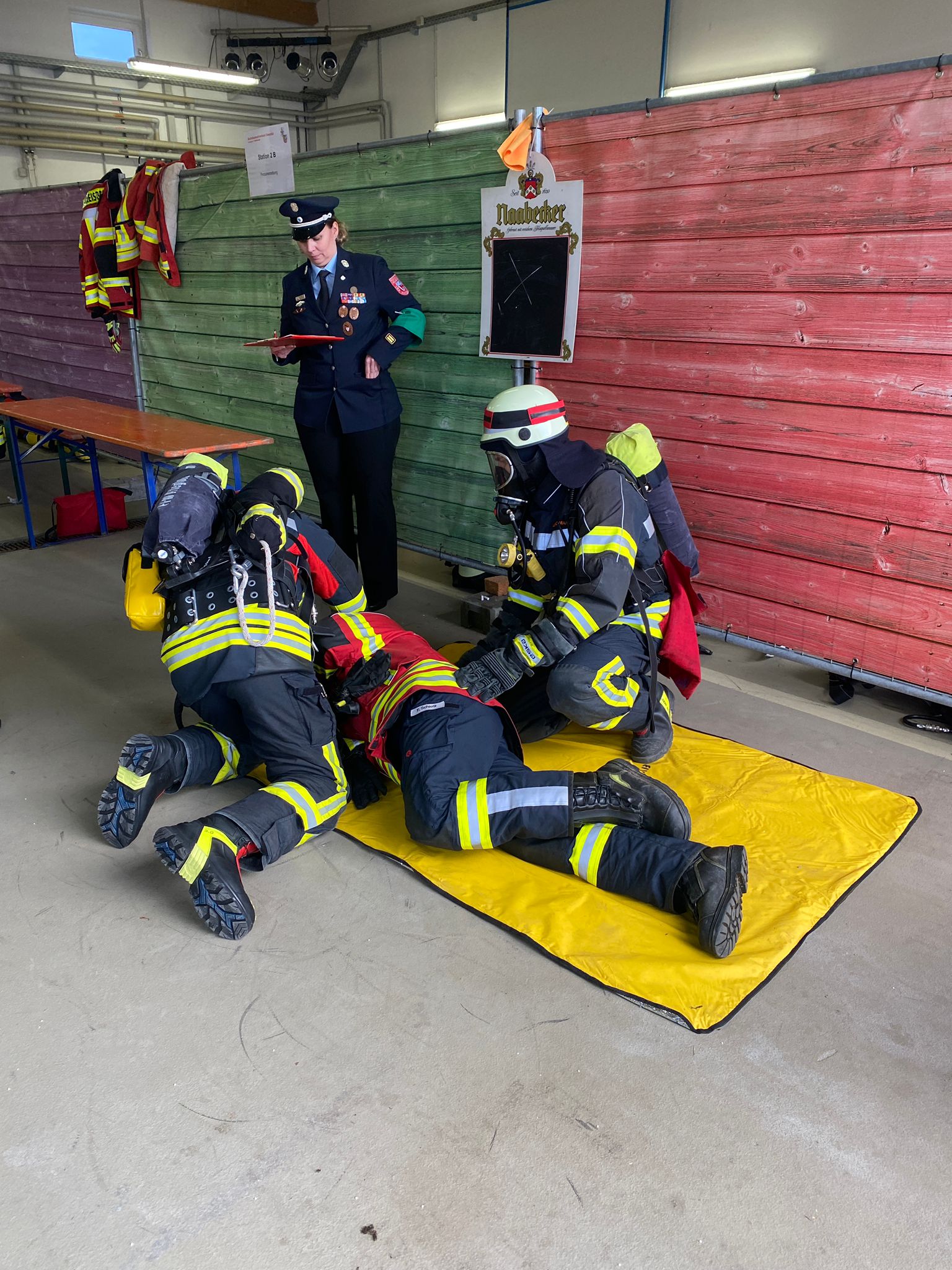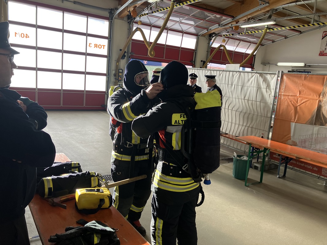 An fünf Stationen ging es rund um das Thema Atemschutz. An der ersten Station wurde das richtige Anziehen eines Pressluftatmers und Atemluftanschluss geprüft. Weiter ging es an der zweiten Station mit einer Personenrettung aus dem ersten Obergeschoss. Mit dem Übungsbefehl Brandbekämpfung startete die dritte Station. Hier musste eine richtige Türöffnung vorgenommen werden. Das richtige Entkleiden nach einen Atemschutzeinsatz war Bestandteil der vierten Station. Mit einem kleinen schriftlichen Test endete die Abnahme. Im Anschluss erfolgte die Übergabe der Abzeichen an alle Teilnehmer. Wir konnten zwei Mal das Abzeichen in Bronze und Silber erreichen. Auf diesen Weg wünschen wir allen Teilnehmenden Trupps noch einmal herzlichen Glückwunsch und bedanken uns für das Engagement unserer freiwilligen Feuerwehrler.