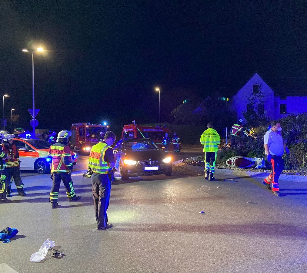 Bereits zum zweiten Mal diese Woche wurde unsere aktive Mannschaft zu einem Einsatz gerufen. Um 22:25 Uhr ereignete sich auf der B 15 im Köferinger Kreisverkehr ein Verkehrsunfall mit einem Motorrad. Zusammen mit der Ortswehr rückten wir mit zwei Rettungswägen einem Notarzt und dem Einsatzleiter Rettungsdienst aus. An der Unfallstelle kümmerten wir uns um die Absicherung der Einsatzstelle und versorgten den unter Schock stehenden Fahrer des PKW´s. Ein weiterer Trupp von uns unterstützte die Polizei bei der Unfallaufnahme. Zum Glück wurde die Fahrerin des Motorrads, welches sich als Roller herausstellte, nicht schwer verletzt. Nachdem die Feuerwehr Köfering unsere Position bei der Verkehrsabsicherung übernahm, konnten wir nach ca. 30 Minuten wieder ins Gerätehaus einrücken. Wir wünschen den beiden Unfallbeteiligten eine schnelle Genesung.