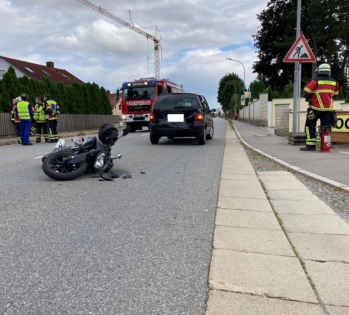 An der Unfallstelle "Motorrad" kümmerten wir uns um Kreisverkehr Köfering um die Lenkung des Verkehrs auf der B 15 von Landshut kommend. An der Einsatzstelle Edeka sicherten wir Zusammen mit der Feuerwehr Köfering die Einsatzstelle bis zum Eintreffen der Polizei ab. Nachdem diese Unfallstelle schneller geräumt werden konnte als die in der Mitte von Köfering, lösten uns unsere Kammeraden der Nachbarwehr ab und wir konnten nach zwei Stunden wieder ins Gerätehaus einrücken.