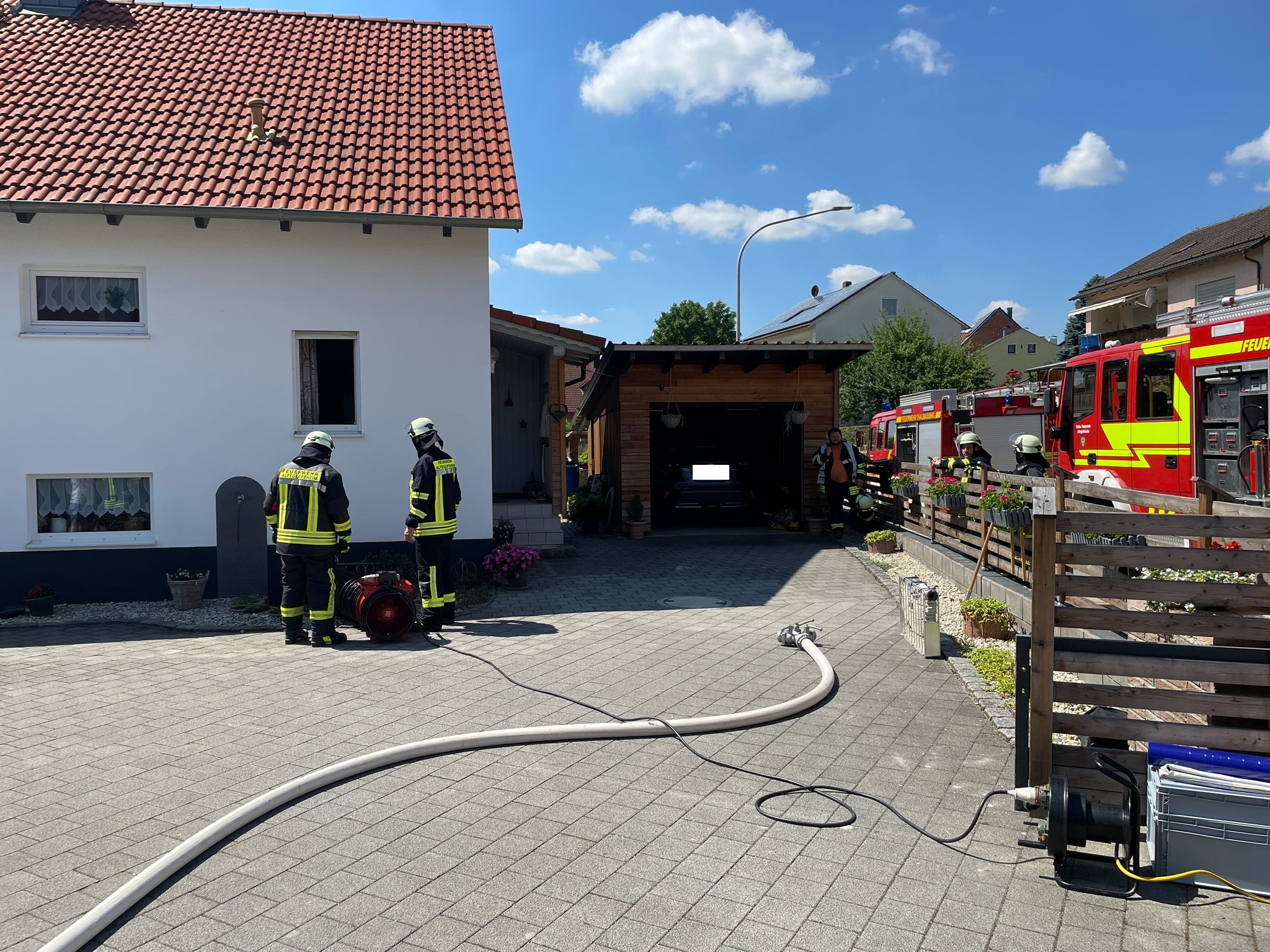 Mit dem Schlagwort B3 „Brand Keller“ wurden wir gegen 11:13 Uhr nach Thalmassing alarmiert. Zusätzlich zur Ortswehr eilten noch die Feuerwehren Luckenpaint, Sanding unser Kreisbrandmeister und Kreisbrandinspektor mit an die Einsatzstelle. Durch den Mitteiler wurde gemeldet, dass eine Waschmaschine im Keller brennt und keine weiteren Personen im Gebäude sind.