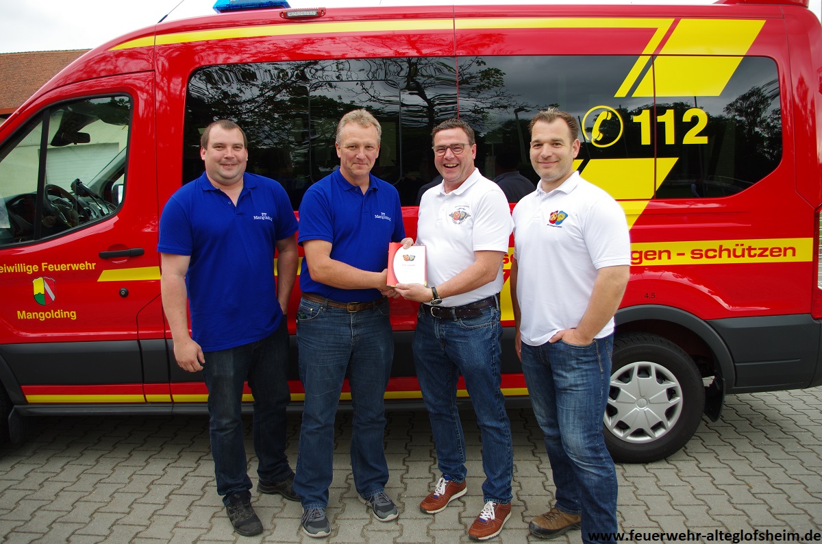 Im Zuge unserer Bierprobe konnten wir unserem Patenverein, der Freiwilligen Feuerwehr Mangolding, eines der ersten Exemplare unserer Festzeitung mit Vereinschronik überreichen.