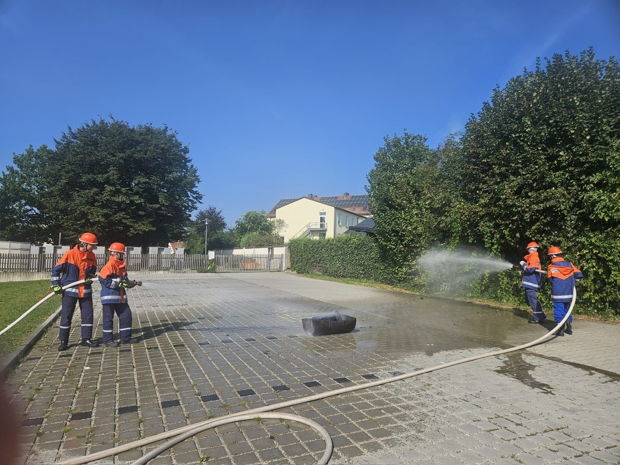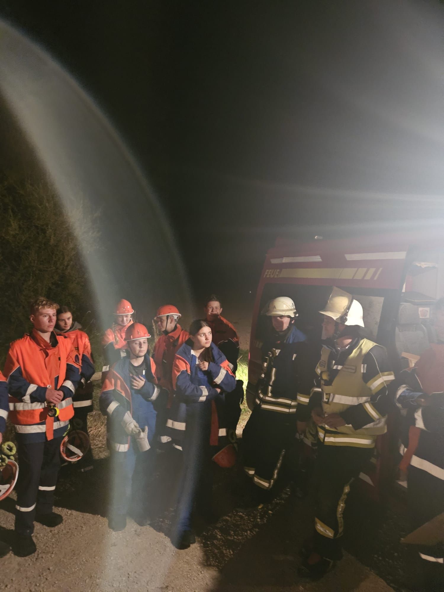 So starteten unsere Jugendlichen um 09:00 Uhr mit einer kleinen Einweisung und der Schichteinteilung für die kommenden 24 Stunden. Anschließend gab es ein stärkendes Frühstück. Nachdem fast alle fertig gegessen hatten, wurde es auch schon ernst für unsere Jugend. Mit dem Einsatzstichwort „B1 Feuer klein“ wurden wir zu einem brennenden Mülleimer alarmiert. Auf Anfahrt erreichte uns zusätzlich die Meldung, dass eine Reanimation im Dorf notwendig ist. So trennten sich unsere ausrückenden Kräfte auf die beiden Einsätze auf. An der Einsatzstelle angekommen, fanden wir eine brennende Tonne vor und löschten diese zügig. Währenddessen führte unser 11/1 und 55/1 die Reanimation erfolgreich durch. Nicht lange im Gerätehaus zurück wurden wir von unserer Übungsleitstelle zu einem PKW Brand alarmiert, der sich schon auf Anfahrt bestätigt. Wir bauten einen Schaumangriff auf und konnten den PKW rasch löschen. Im Gerätehaus zurück gab es zuerst einmal Mittagessen. Gegen 13:20 Uhr wurden wir zusammen mit der Feuerwehr aus Hagelstadt, die an diesem Wochenende ebenfalls ihren Bf-Tag veranstalteten, zu einem Gebäudebrand mit vermissten Personen gerufen. Gemeinsam befreiten wir zügig alle Personen aus ihrer misslichen Lage. Wir bedanken uns ganz herzlich bei der Feuerwehr Hagelstadt für ihre Teilnahme und die gute Zusammenarbeit. Als alles wieder sauber eingepackt war, ging es für unsere Jugend zurück ins Gerätehaus. Nach einer kurzen Verschnaufpause lautete das nächste Einsatzstichwort „VU mit PKW mehreren Personen eingeklemmt“. An der Einsatzstelle angekommen ergab die Erkundung, dass zwei Personen eingeklemmt waren. Diese wurden von unserer Jugend rasch befreit und versorgt. Nach dem Abendessen, bei dem es Leckeres vom Grill gab, wurden wir zu einer eingeklemmten Person gerufen. Diese wurde von einem Autofahrer übersehen, und hatte sich unter dem PKW verklemmt. Zügig wurde die Person mit Hilfe unserer Hebekissen befreit, sodass wir die Einsatzstelle nach kurzer Zeit wieder verlassen konnten. Mit Einbruch der Dunkelheit wurden wir mit dem Einsatzstichwort „Personensuche mehrere Personen vermisst“ zu unserem letzten Einsatz des Abends gerufen. An der Einsatzstelle angekommen stellte sich heraus das acht Freunde sich auf dem Nachhauseweg im Wald verloren hatten. Wir führten eine Personensuche mittels Kette und einzelnen Suchtrupps durch. So konnten wir die Personen schnell finden und zurück ins Warme begleiten. Zurück am Gerätehaus angekommen hatten sich die Jugendlichen die Nachtruhe redlich verdient. Am frühen Morgen wurden wir nochmal zu einer bewusstlosen Person gerufen. Wir retteten die Person mittels Steckleiter, sodass wir die Einsatzstelle zügig wieder verlassen konnten. Bevor das wohlverdiente Schichtende mit einem gemeinsamen Frühstück eingeläutet wurde, musste zuerst das Gerätehaus und die Fahrzeuge wieder auf Vordermann gebracht werden.
