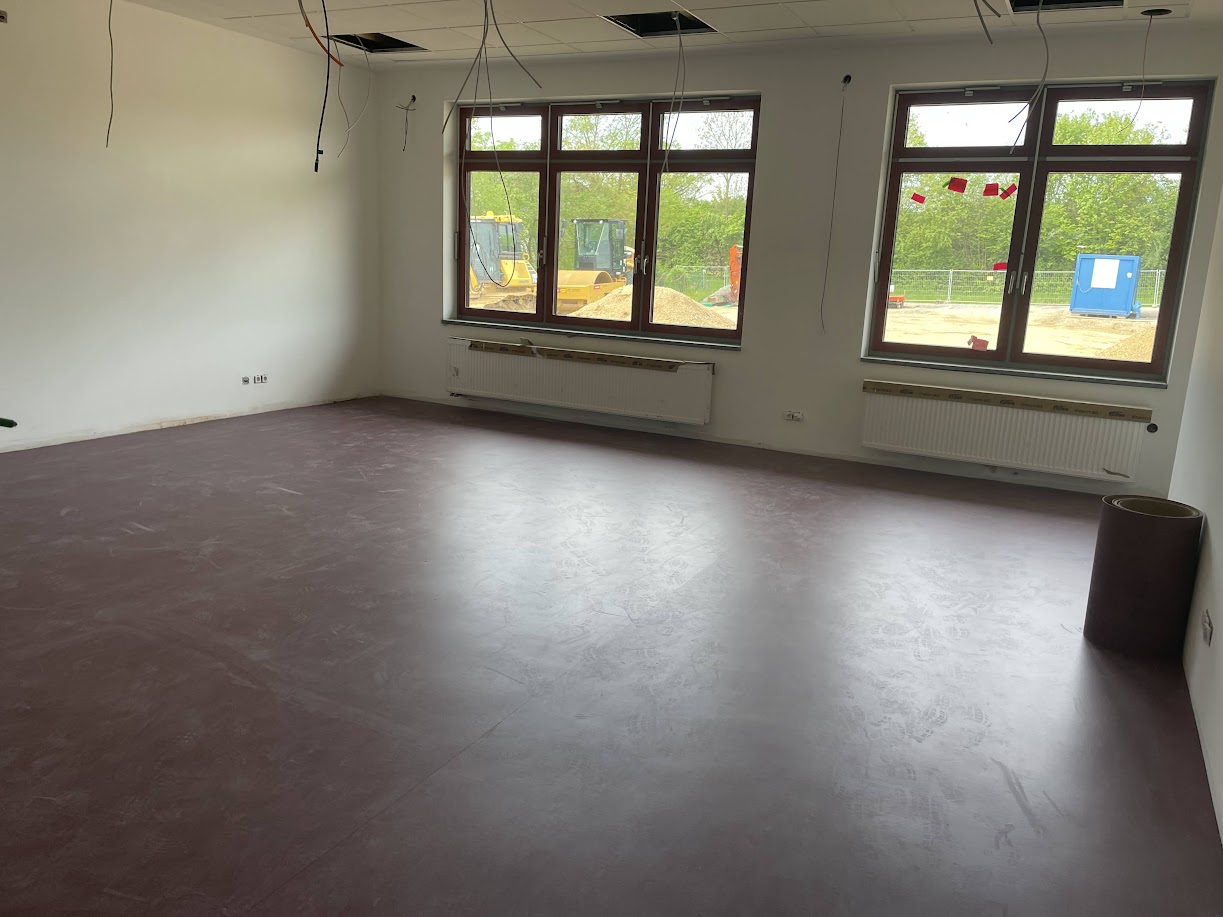 Auch im Sozialtrakt gehen die Arbeiten stetig weiter. Im Schulungsraum und in der Einsatzzentrale sowie den Büros sind bereits die Weichböden verlegt.