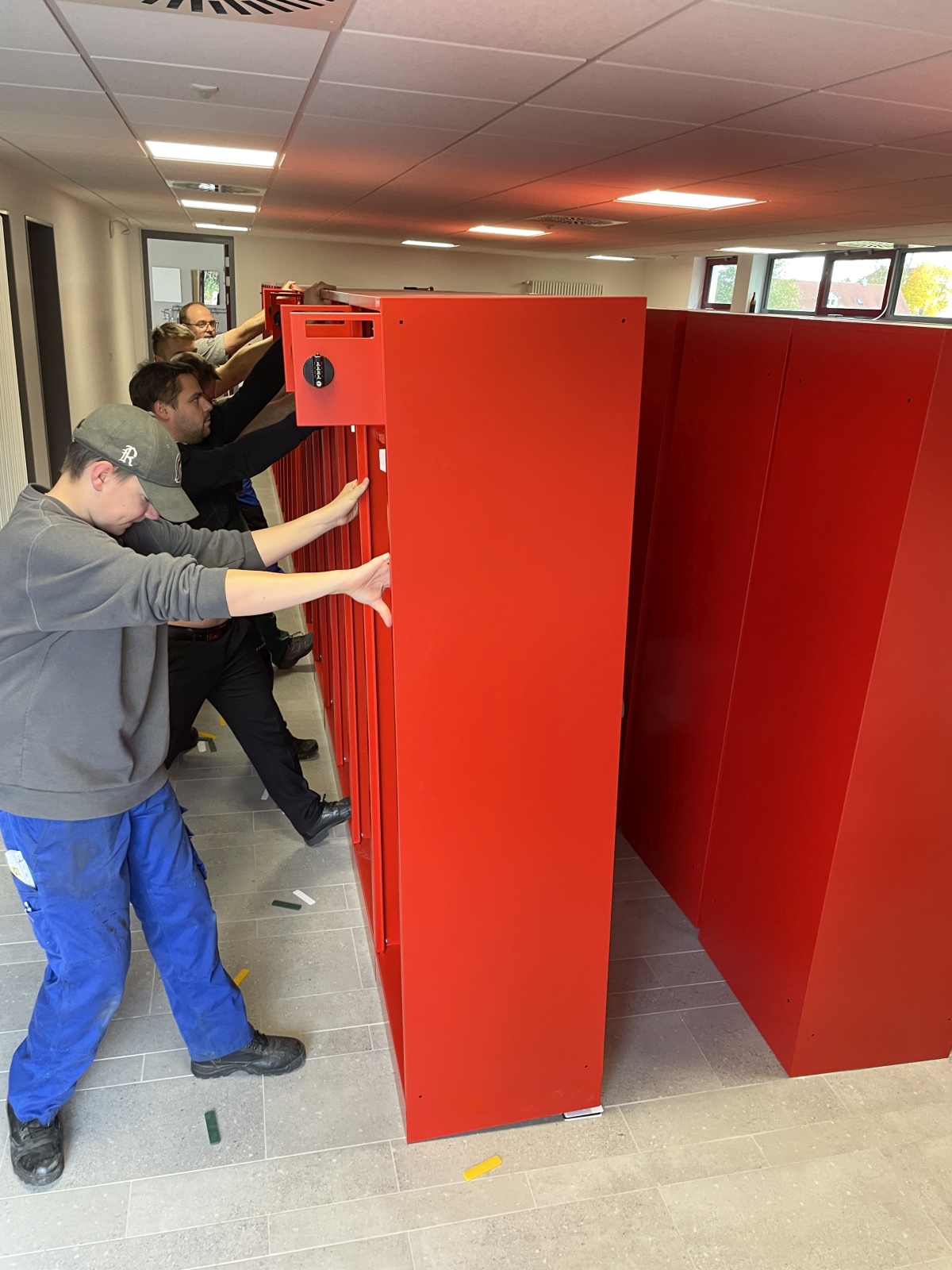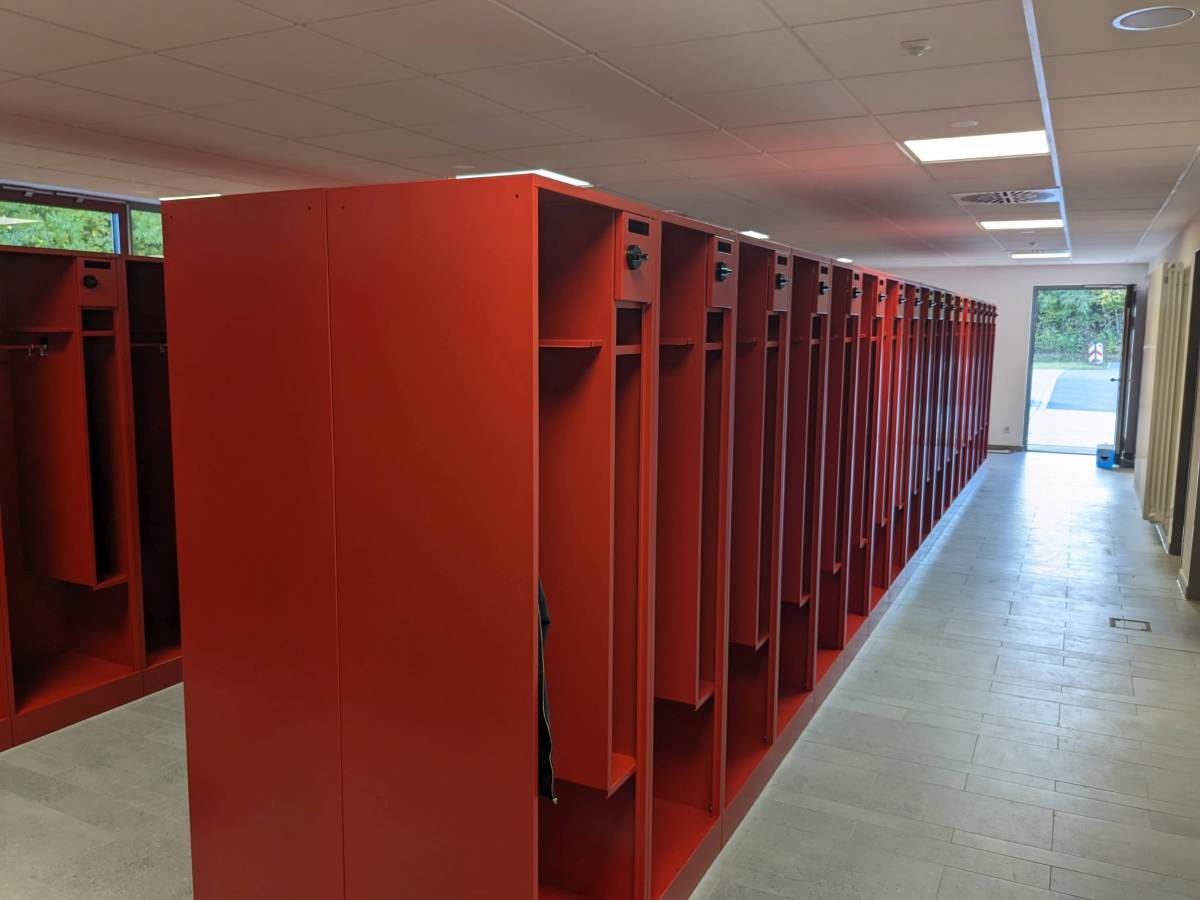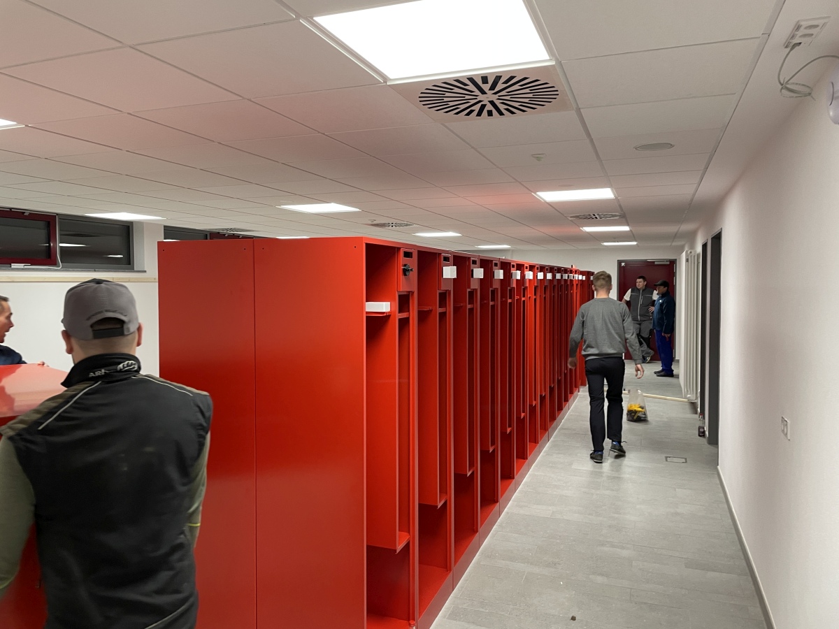 In rund 150 Arbeitsstunden wurden die Spinde in der Umkleide aufgestellt, das Büro eingerichtet, IT-Technik im Aussenbereich montiert, Regale aufgestellt und die Technik im Unterrichtsraum verbaut.