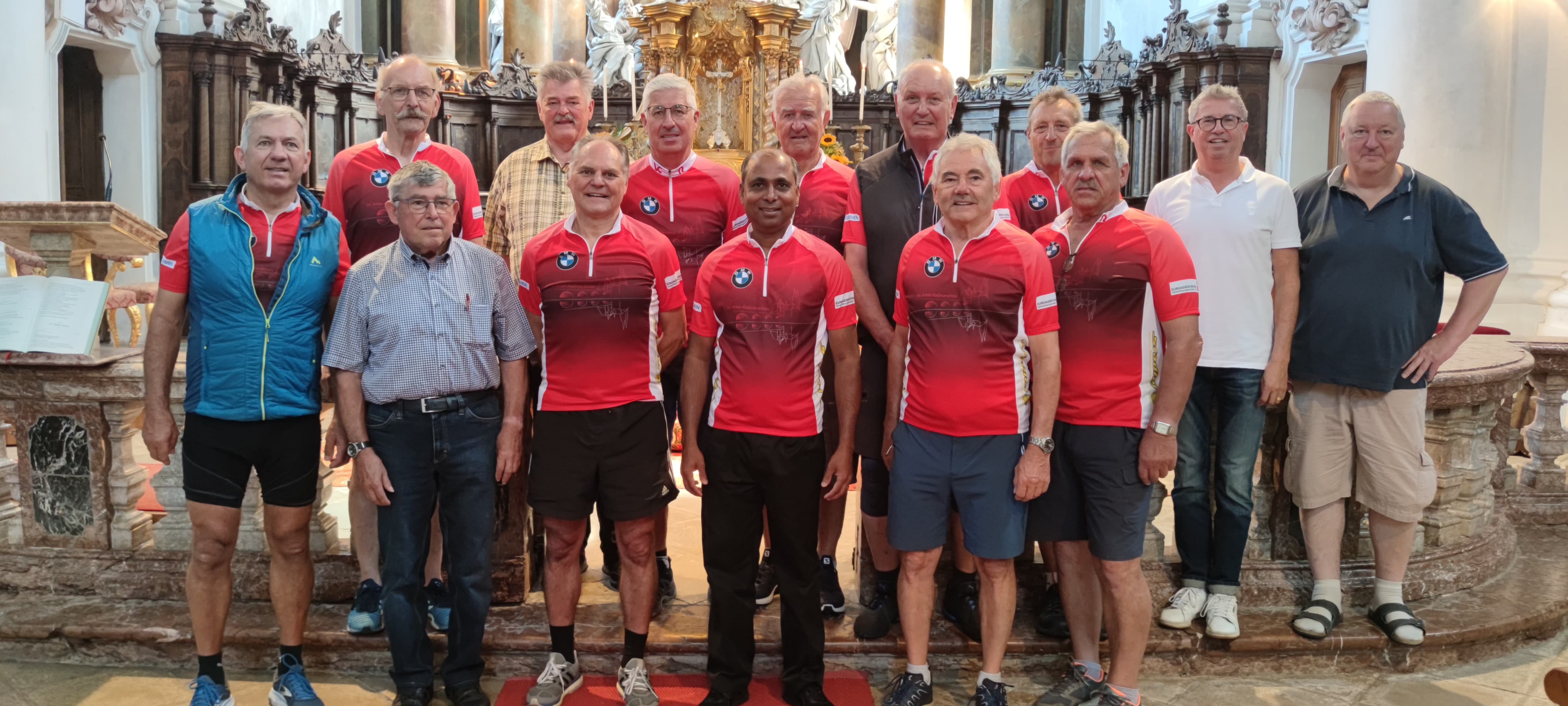 Die diesjährige Radwallfahrt der Ü40 begann, wie schon seit 2011 üblich, mit dem Reisesegen auf dem Kirchplatz – gespendet von Pfarrer Pater Joseph Puthussery, der auch selbst mitgeradelt ist. Um 7:45 Uhr ging es bei angenehmen Radwetter mit dem Ziel - Wallfahrtskirche Rohr in NB los.