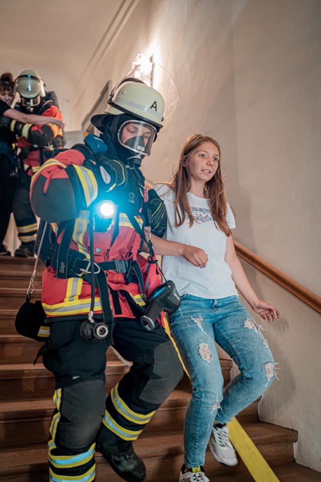 Insgesamt waren bei der Übung 160 Feuerwehrkammerad-innen, 30 Kräfte des Rettungsdienstes sowie 17 Verletztendarsteller beteiligt.