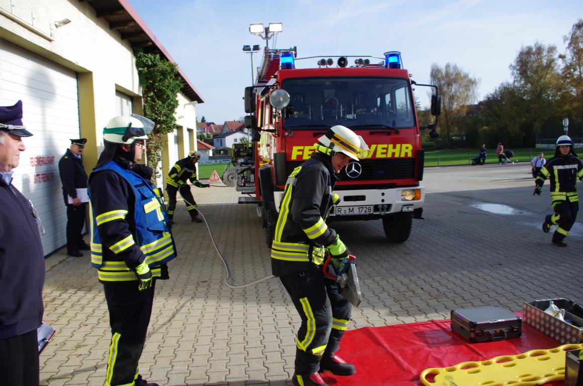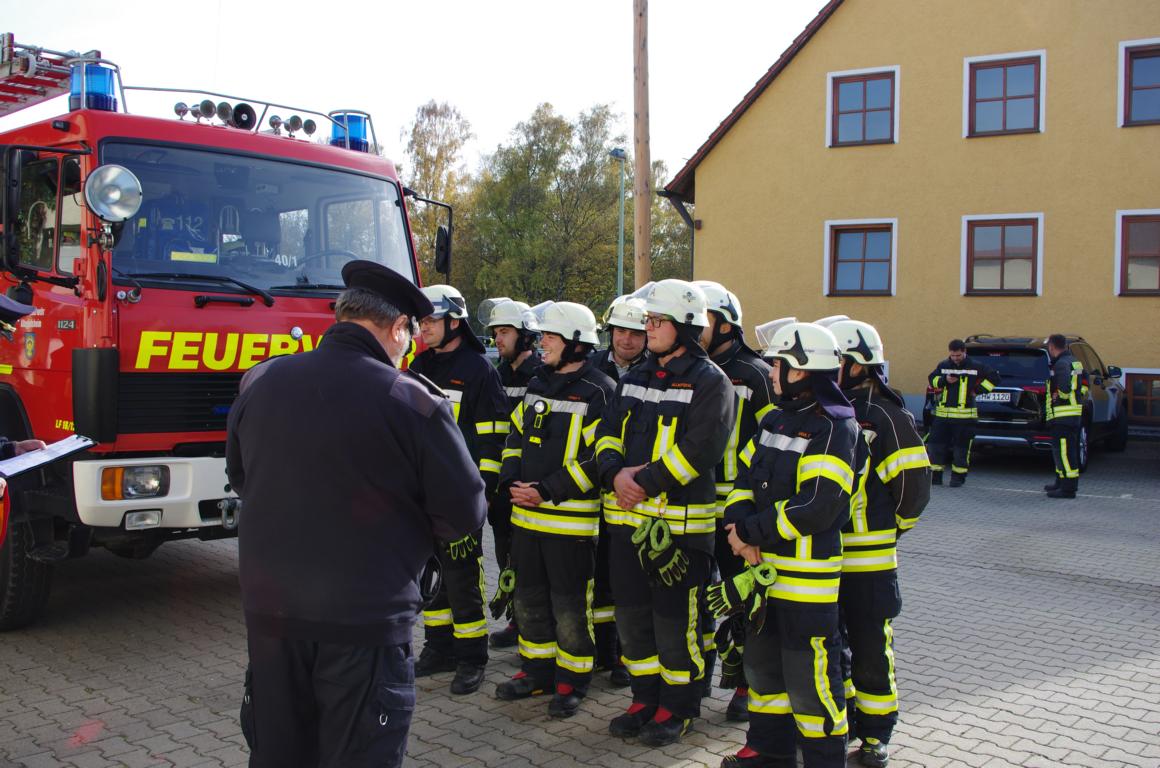Bei strahlendem Sonnenschein und 19 Grad eher ungewöhnlich für Ende Oktober. 24 Teilnehmer unserer Feuerwehr legten unter den Schiedsrichtern KBI Hausler Willi, KBM Fenn Josef und KBM Hopfensperger Hans das HL Leistungsabzeichen ab. Mit zehn angebotenen Übungsterminen wurden die Teilnehmer durch unseren 1. Kommandanten Josef Steinberger auf das Abzeichen vorbereitet. Nicht nur der Korrekte Aufbau für den Hilfeleistungseinsatz wurde geprüft, sondern auch bei Gerätekunde- und Truppaufgaben mussten die Teilnehmer ihr erlerntes Wissen unter Beweis stellen. Mit Bravour und fehlerfrei haben alle drei Gruppen das Abzeichen bestanden. Im Feuerwehrhaus wurde den 24 Teilnehmern die Abzeichen verliehen. Abgelegt wurden sechs Mal das bronzene, vier Mal das silberne, fünf Mal das goldene, vier Mal das goldblaue und fünf Mal das goldgrüne Abzeichen. Nicht nur unser Kommandant dankte den Teilnehmern des Abzeichens für ihren Einsatz in unserer Wehr, sondern auch der erste Bürgermeister Herbert Heidingsfelder und KBI Hausler Willi. Anschließend wurde bei einer Brotzeit das Abzeichen im Feuerwehrhaus gebührend gefeiert.