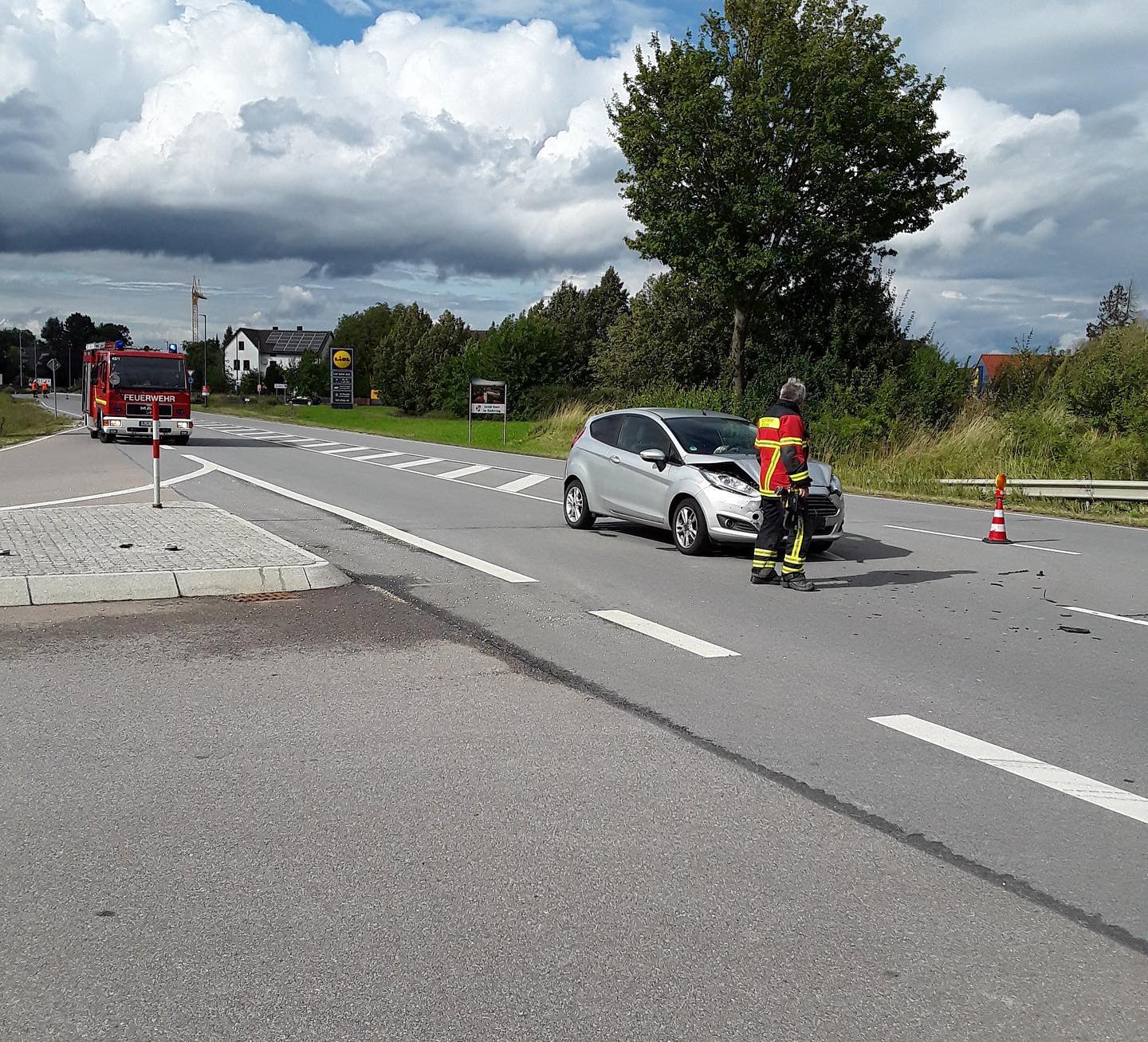 An der Unfallstelle "Motorrad" kümmerten wir uns um Kreisverkehr Köfering um die Lenkung des Verkehrs auf der B 15 von Landshut kommend. An der Einsatzstelle Edeka sicherten wir Zusammen mit der Feuerwehr Köfering die Einsatzstelle bis zum Eintreffen der Polizei ab. Nachdem diese Unfallstelle schneller geräumt werden konnte als die in der Mitte von Köfering, lösten uns unsere Kammeraden der Nachbarwehr ab und wir konnten nach zwei Stunden wieder ins Gerätehaus einrücken.