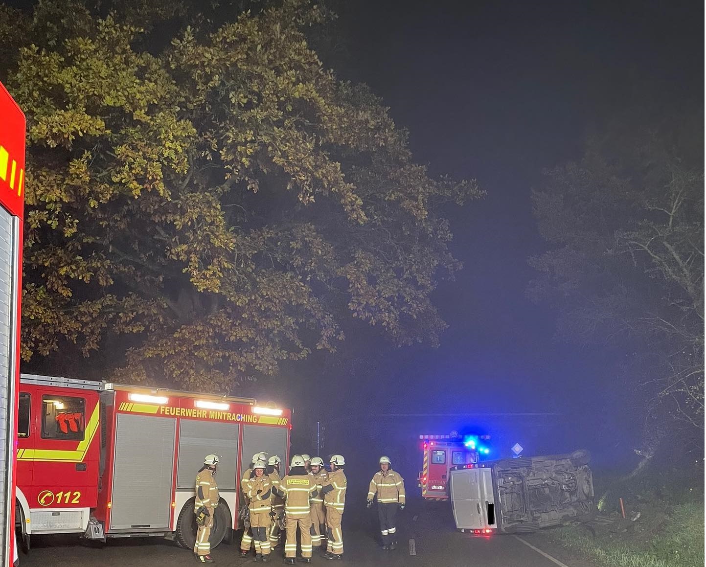 Während unserer Sicherheitswache am Kirchplatz heulten am Samstagabend die Sirenen in Alteglofsheim, Moosham, Sengkofen, Mintraching und Langenerling auf. Zusammen mit dem Rettungsdienst und den Zuständigen Kreisbrandmeister und Inspektor wurden wir zu einem Verkehrsunfall mit LKW alarmiert.