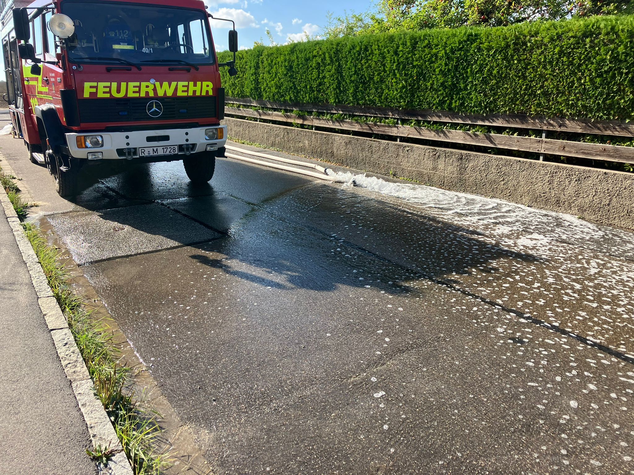 Mit unserem ersten Auto erkundeten wir die Lage vor Ort. Dabei stellte sich heraus, dass der Keller des Einfamilienhauses wirklich bis zur Decke mit Wasser gefüllt war. Wir begannen mit den Pumparbeiten und pumpten ca. 150 m³ Wasser aus dem Gebäude. Bei der Erkundung stellten wir zusätzlich fest, dass auch im Nachbargebäude das Wasser einen Schaden angerichtet hatte. Hier war bei unserem Eintreffen bereits der Heizöltankraum mit Wasser vollgelaufen. Da bereits die Tanks aufgeschwommen waren, entschied sich der Einsatzleiter den KBM Gefahrgut als Fachberater an die Einsatzstelle zu holen. Zusammen mit ihm wurden die Heizöltanks gesichert und ein Auslaufen von Heizöl verhindert. Nach ca. 4,5 Stunden konnten wir die Einsatzstelle wieder verlassen.
