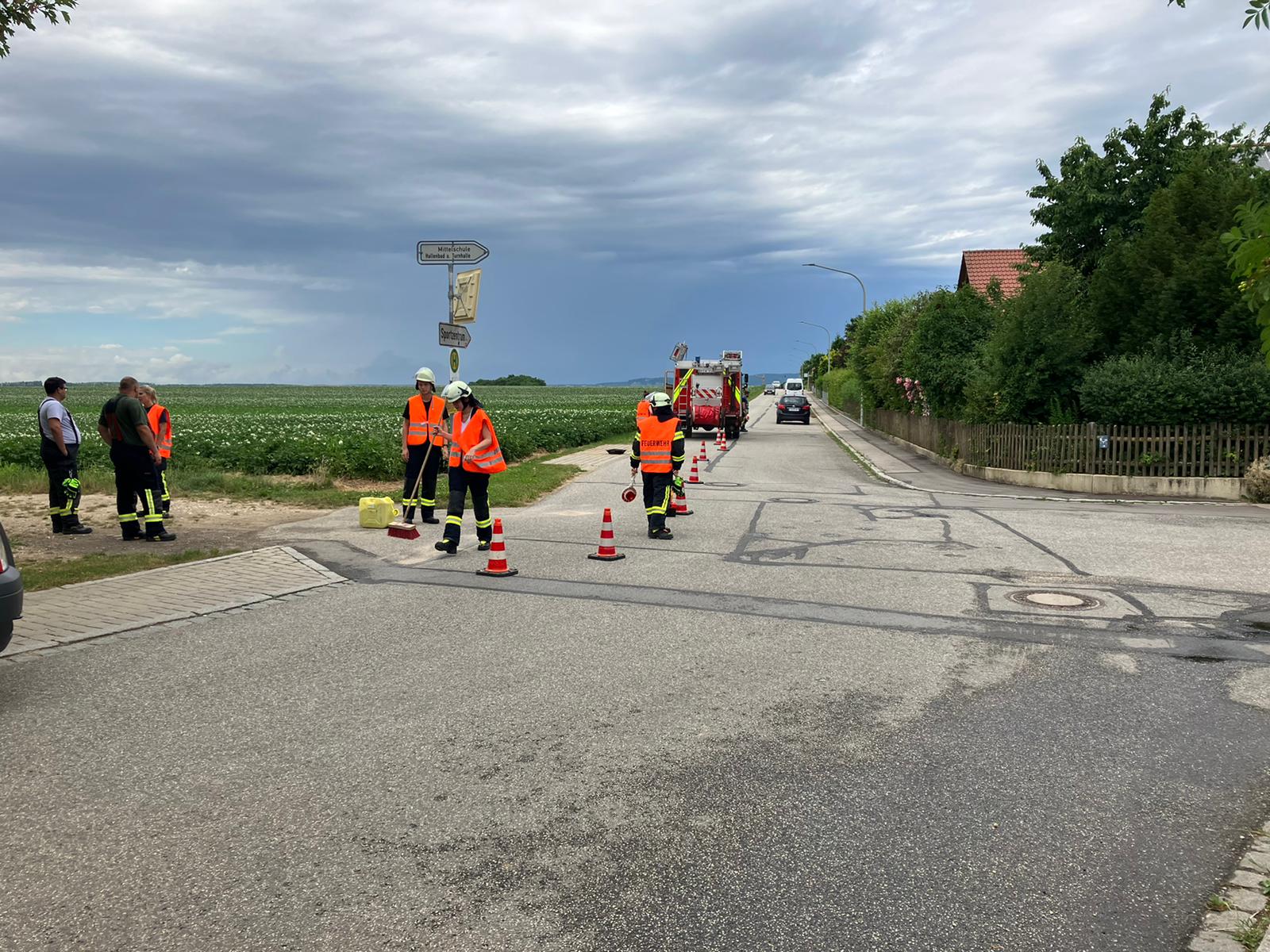 Durch die ILS Regensburg wurden wir am Freitagnachmitttag kurz nach 13:30 Uhr zu einem Einsatz alarmiert. Mit dem Schlagwort "Straße reinigen" machten wir uns auf den Weg zur Einsatzstelle im Köferinger Weg in Alteglofsheim.