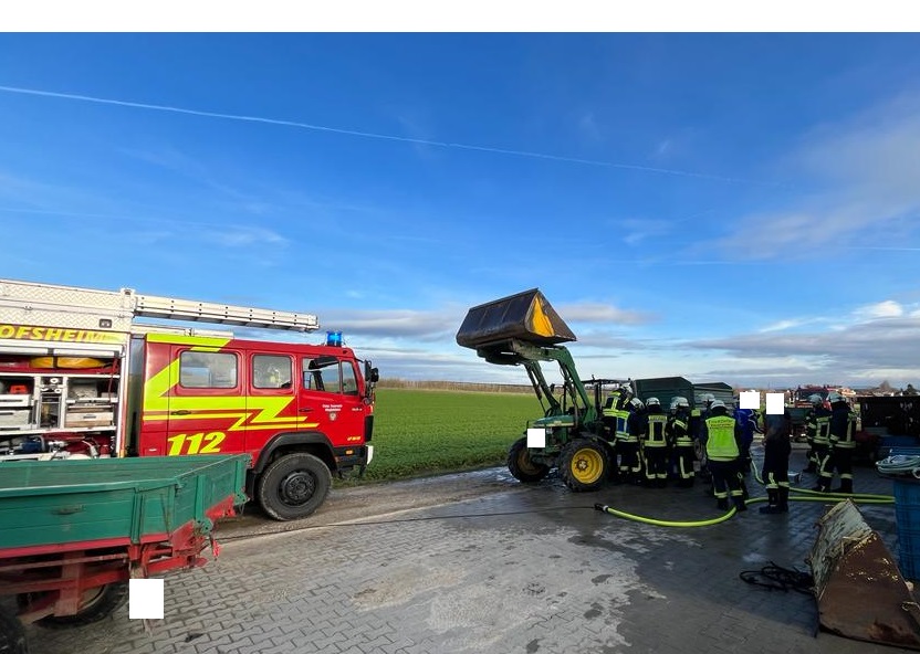 Gegen 10:40 Uhr ging in der ILS Regensburg ein Anruf über einen in Flammen stehenden Traktor ein. Der alarmierende Landwirt war mit seinem Traktor auf einem Feldweg in Alteglofsheim unterwegs und wollte in einer Halle kurz etwas überprüfen. Als er aus der Halle wieder zurückkam, sah er bereits seinen Traktor in Flammen stehen.