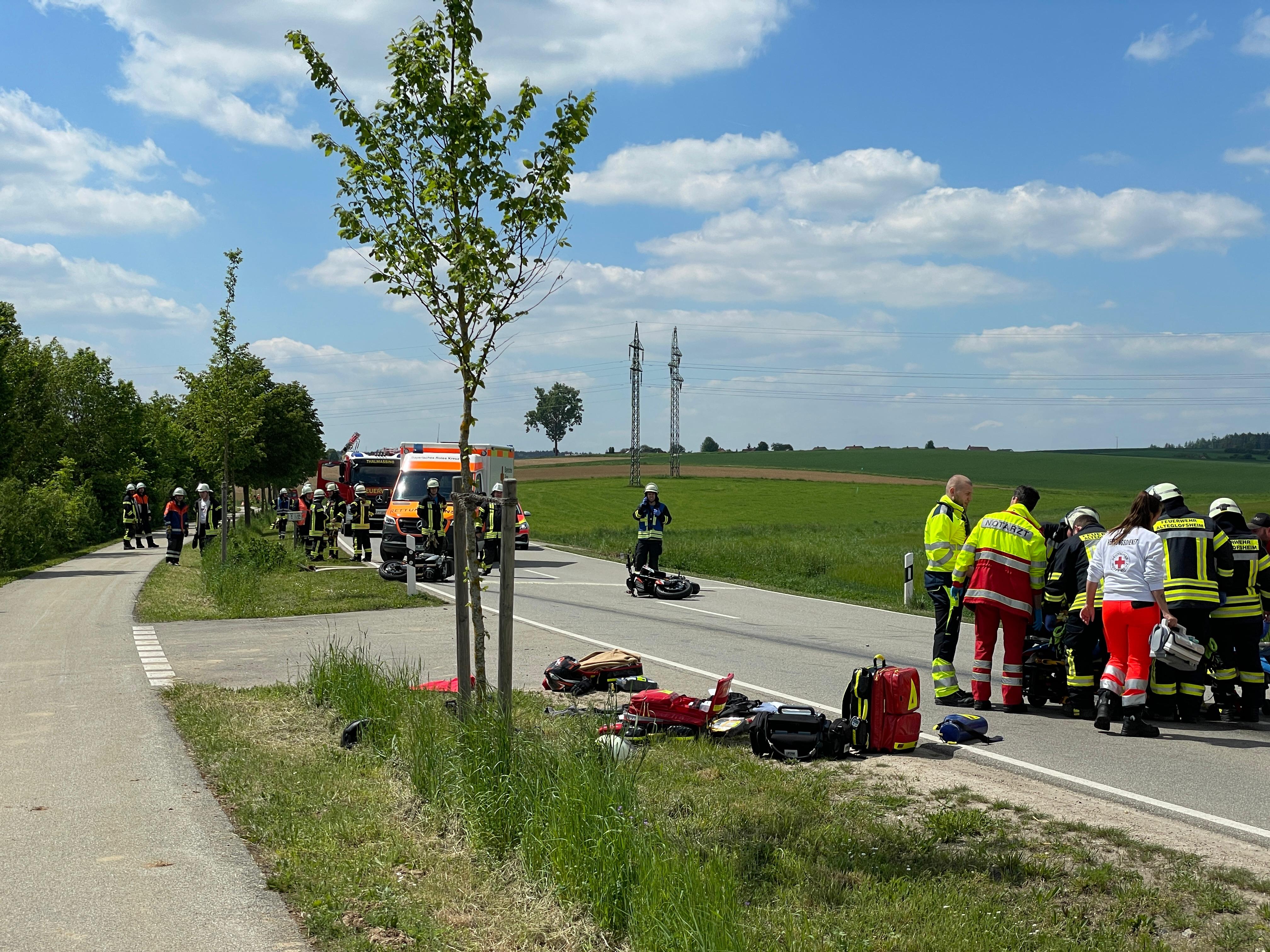 Kurz vor 13:00 Uhr ereignete sich auf der Kreisstraße R3 zwischen Thalmassing und Alteglofsheim ein Verkehrsunfall mit einem PKW und zwei Motorrädern. Durch die Integrierte Leitstelle Regensburg wurden wir zusammen mit der Feuerwehr Thalmassing um 12:53 Uhr mit dem Schlagwort THL eins mit Motorrad an die Unfallstelle alarmiert.