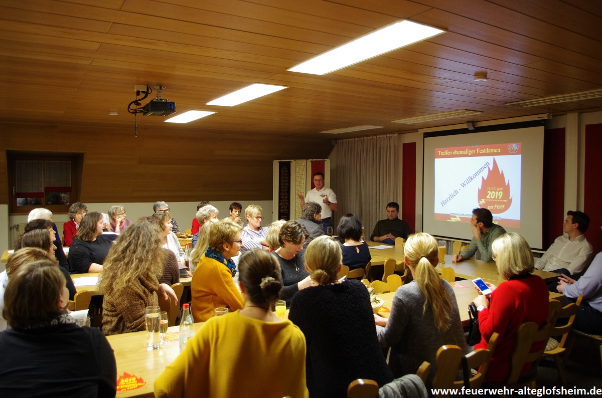 Ein besonderes Treffen stand diesen Freitagabend im Feuerwehrhaus Alteglofsheim an. Unser Festleiter und Vorstand Thomas Limmer lud die Festdamen und Mädchen der vergangenen Gründungsfeste ins Feuerwehrhaus ein. Trotz des schlechten Wetters mit anhaltendem Schneefall besuchten uns 35 Damen von insgesamt 70, die an den letzten Gründungsfesten Festdamen und Mädchen waren. Dies freute Thomas besonders und stimmte die Anwesenden gleich auf unser diesjähriges Gründungsfest ein. Nach einem kurzen Vortrag über die vergangenen Gründungsfeste präsentierte Thomas noch das Festprogramm und lud alle ehemaligen Festdamen zu unserem Gründungsfest ein. Im Anschluss folgte der gemütliche Teil, bei dem alle Anwesenden ihre Erinnerungen an die Feste austauschten. Besonders Interesse fanden die Fotoalben, welche einige Ehemalige mitbrachten. Als besonderes Highlight wurde der Film von 100 Jährigen Gründungsfest empfunden.