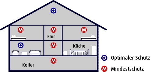 Der Rauchmelder sollte immer an der obersten Stelle im Zimmer angebracht werden. Optional ist die Anbringung von Rauchmeldern im Keller und am Dachboden Sinnvoll.