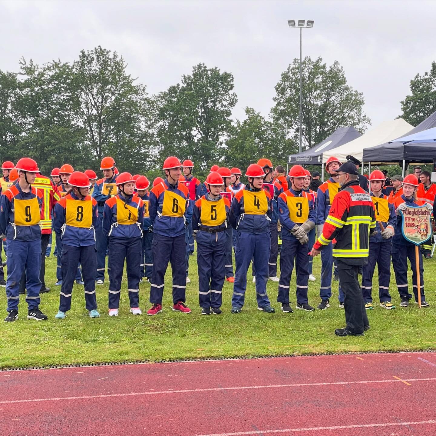 Dort angekommen, bezogen wir unsere Unterkunft im Stiftland-Gymnasium in Tirschenreuth. Am selben Abend wurde durch einen Alleinunterhalter der Wettkampf eröffnet. Am Freitagmorgen war es dann auch schon soweit: unsere Wettkampfgruppe musste bei noch trockenem Wetter das Pflichttraining absolvieren. Nachdem dies mit einer guten Leistung erledigt war, ging es am Nachmittag in die Thermenwelt nach Weiden. Am frühen Samstagmorgen wurde durch den Wettbewerbsleiter trotz regnerischem Wetter das Go für den Wettbewerb gegeben. So absolvierte unsere Mannschaft denn Wettkampfdurchgang mit einer soliden Leistung und landete am Ende auf dem 14. Platz. Im Anschluss an die Siegerehrung machten sich alle gemeinsam wieder auf den Heimweg. Zuhause angekommen, wurde unsere Wettkampfgruppe mit einer Schlauchspirale in Empfang genommen. Nach einer Empfangsrede des Kommandanten gab es dann für alle Burger und man feierte noch gemeinsam den Erfolg.