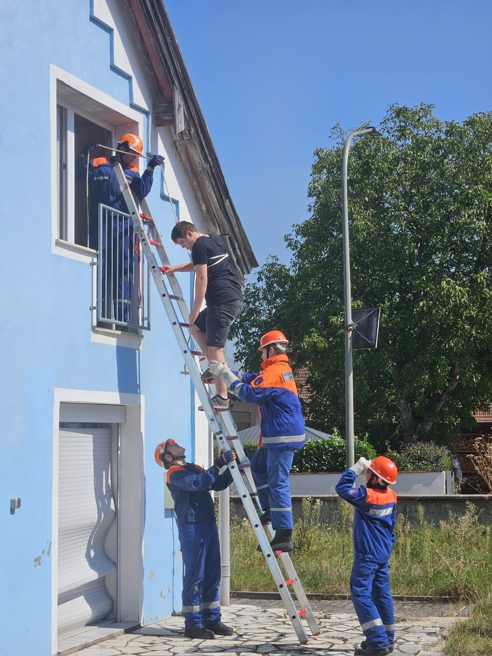 So starteten unsere Jugendlichen um 09:00 Uhr mit einer kleinen Einweisung und der Schichteinteilung für die kommenden 24 Stunden. Anschließend gab es ein stärkendes Frühstück. Nachdem fast alle fertig gegessen hatten, wurde es auch schon ernst für unsere Jugend. Mit dem Einsatzstichwort „B1 Feuer klein“ wurden wir zu einem brennenden Mülleimer alarmiert. Auf Anfahrt erreichte uns zusätzlich die Meldung, dass eine Reanimation im Dorf notwendig ist. So trennten sich unsere ausrückenden Kräfte auf die beiden Einsätze auf. An der Einsatzstelle angekommen, fanden wir eine brennende Tonne vor und löschten diese zügig. Währenddessen führte unser 11/1 und 55/1 die Reanimation erfolgreich durch. Nicht lange im Gerätehaus zurück wurden wir von unserer Übungsleitstelle zu einem PKW Brand alarmiert, der sich schon auf Anfahrt bestätigt. Wir bauten einen Schaumangriff auf und konnten den PKW rasch löschen. Im Gerätehaus zurück gab es zuerst einmal Mittagessen. Gegen 13:20 Uhr wurden wir zusammen mit der Feuerwehr aus Hagelstadt, die an diesem Wochenende ebenfalls ihren Bf-Tag veranstalteten, zu einem Gebäudebrand mit vermissten Personen gerufen. Gemeinsam befreiten wir zügig alle Personen aus ihrer misslichen Lage. Wir bedanken uns ganz herzlich bei der Feuerwehr Hagelstadt für ihre Teilnahme und die gute Zusammenarbeit. Als alles wieder sauber eingepackt war, ging es für unsere Jugend zurück ins Gerätehaus. Nach einer kurzen Verschnaufpause lautete das nächste Einsatzstichwort „VU mit PKW mehreren Personen eingeklemmt“. An der Einsatzstelle angekommen ergab die Erkundung, dass zwei Personen eingeklemmt waren. Diese wurden von unserer Jugend rasch befreit und versorgt. Nach dem Abendessen, bei dem es Leckeres vom Grill gab, wurden wir zu einer eingeklemmten Person gerufen. Diese wurde von einem Autofahrer übersehen, und hatte sich unter dem PKW verklemmt. Zügig wurde die Person mit Hilfe unserer Hebekissen befreit, sodass wir die Einsatzstelle nach kurzer Zeit wieder verlassen konnten. Mit Einbruch der Dunkelheit wurden wir mit dem Einsatzstichwort „Personensuche mehrere Personen vermisst“ zu unserem letzten Einsatz des Abends gerufen. An der Einsatzstelle angekommen stellte sich heraus das acht Freunde sich auf dem Nachhauseweg im Wald verloren hatten. Wir führten eine Personensuche mittels Kette und einzelnen Suchtrupps durch. So konnten wir die Personen schnell finden und zurück ins Warme begleiten. Zurück am Gerätehaus angekommen hatten sich die Jugendlichen die Nachtruhe redlich verdient. Am frühen Morgen wurden wir nochmal zu einer bewusstlosen Person gerufen. Wir retteten die Person mittels Steckleiter, sodass wir die Einsatzstelle zügig wieder verlassen konnten. Bevor das wohlverdiente Schichtende mit einem gemeinsamen Frühstück eingeläutet wurde, musste zuerst das Gerätehaus und die Fahrzeuge wieder auf Vordermann gebracht werden.