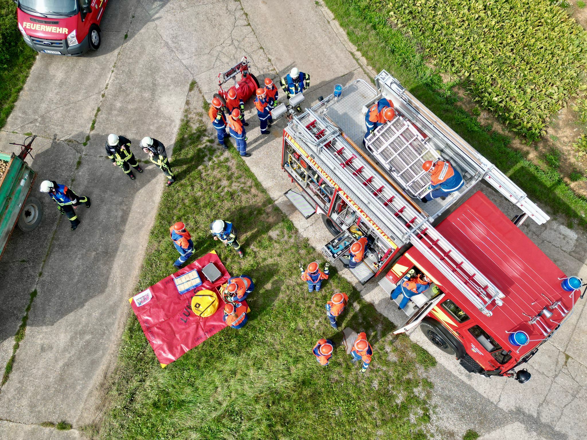 Dazu gehören vom Technischen Dienst bis über die gemeinsame Verpflegung und Dienstsport natürlich auch die verschiedensten Übungseinsätze. So galt es einen Verkehrsunfall mit eingeklemmten Personen, Öl auf Gewässer, eine Reanimation, eine eingeklemmte Person unter einem Bagger, einer Brandmeldeanlage, einen Brand eines Landwirtschaftlichen Anwesens, eine Türöffnung, eine verschüttete Person sowie eine Personensuche abzuarbeiten.