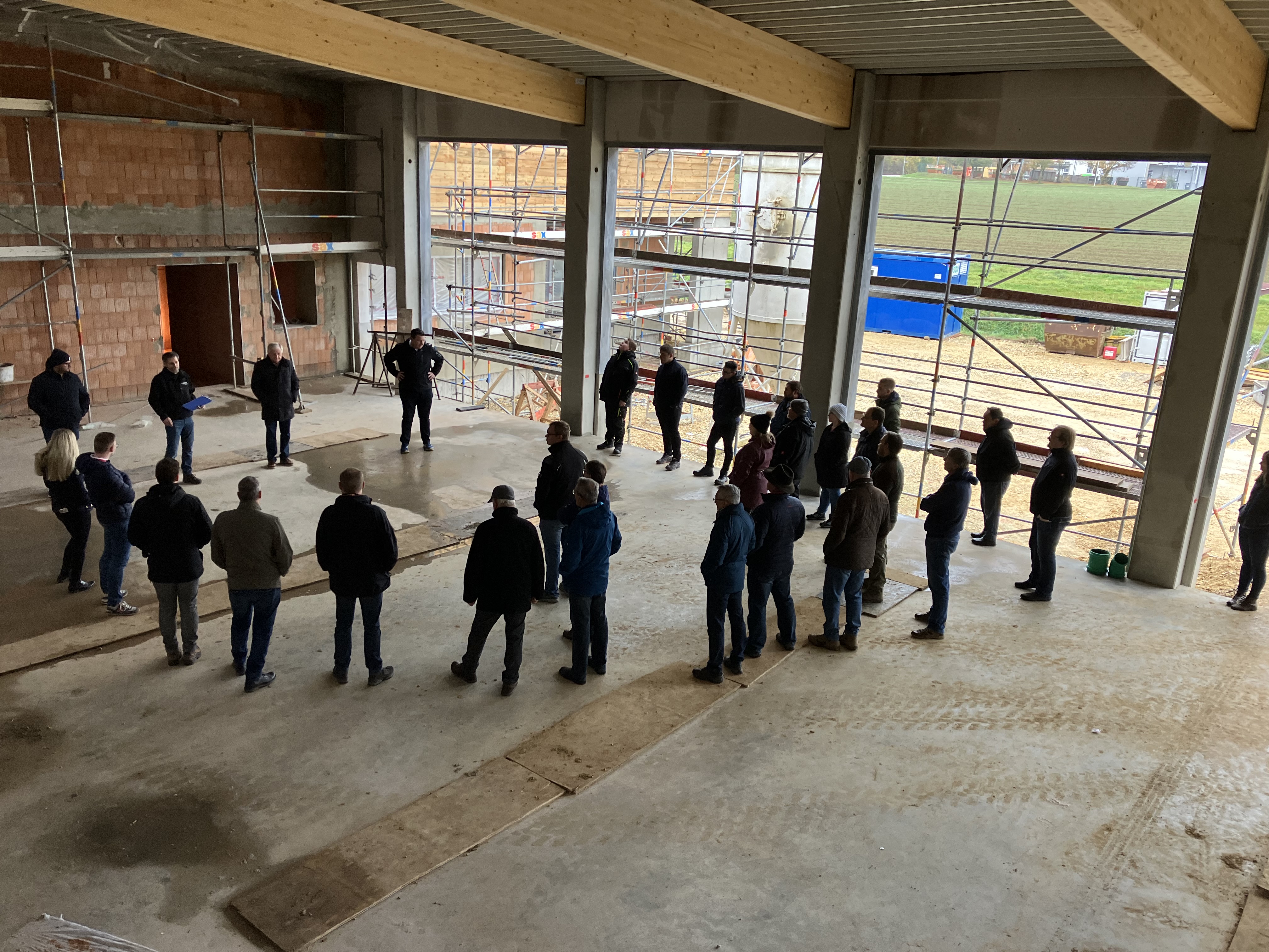 Für unsere aktiven, passiven und jugendlichen Mitglieder fand heute Vormittag eine Rohbaubesichtigung im Neubau unseres Feuerwehrhauses statt. Den knapp 50 Teilnehmern konnten wir in zwei Gruppen mit einer Führung den Baufortschritt vor Ort zeigen. Inzwischen ist auch das Blechdach auf unserem Sozialtrakt montiert und die Fenster eingebaut. Der Innenausbau hat auch bereits begonnen, so konnten wir bereits die Lehrrohre für die Hauselektrik und Sanitärleitungen sehen. Im Anschluss an die Führung konnten sich unsere Besucher bei einem Getränk im zukünftigen Bereitschaftsraum über unseren Neubau austauschen. Ab nächster Woche beginnen die Verputzerarbeiten im und am Gebäude.