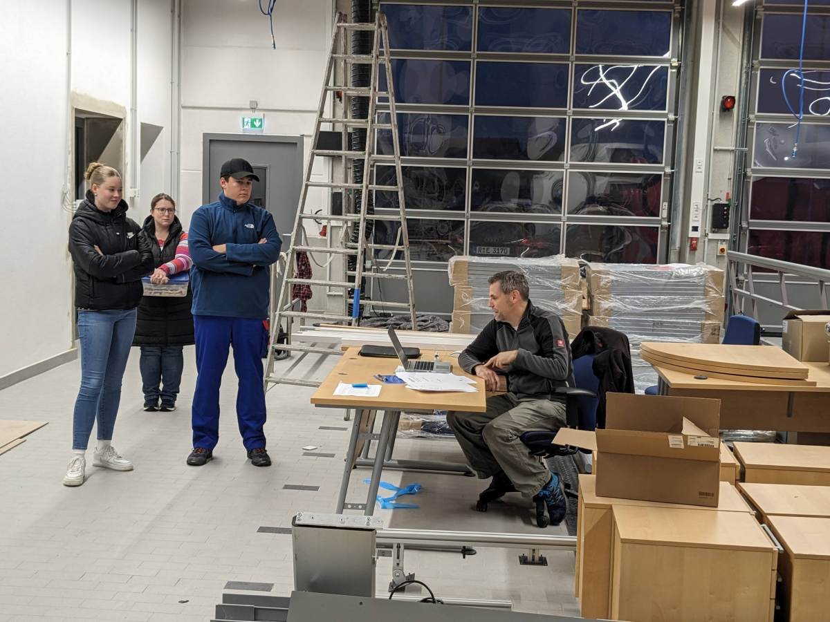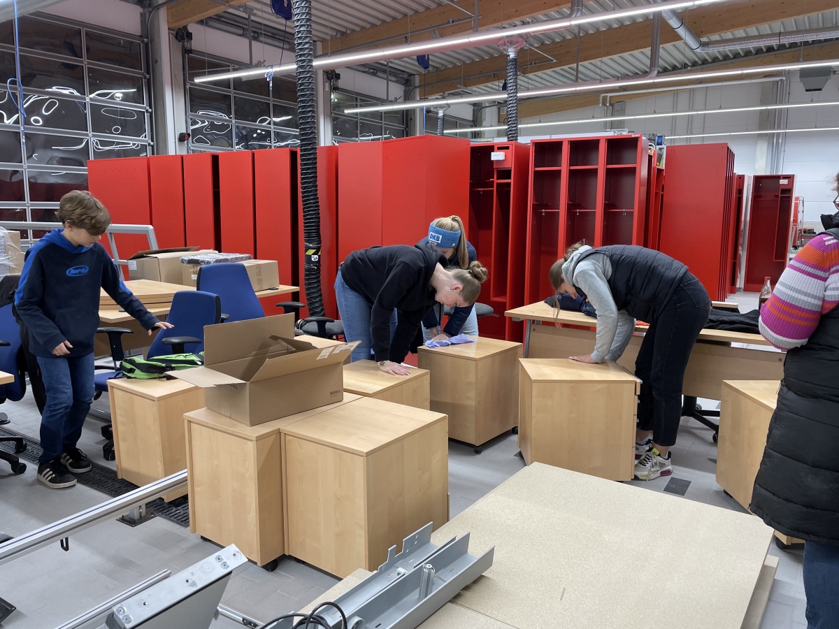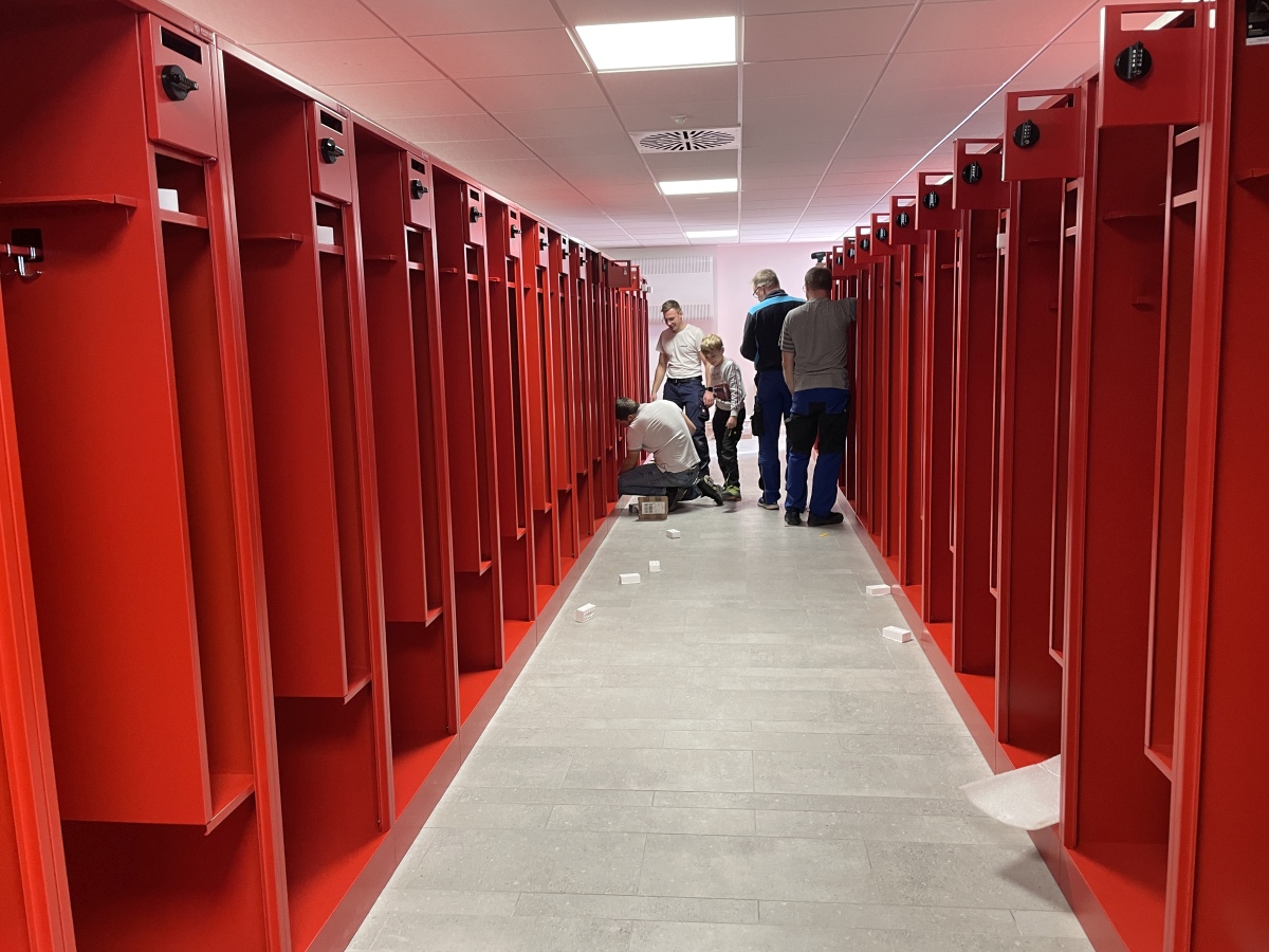 In rund 150 Arbeitsstunden wurden die Spinde in der Umkleide aufgestellt, das Büro eingerichtet, IT-Technik im Aussenbereich montiert, Regale aufgestellt und die Technik im Unterrichtsraum verbaut.
