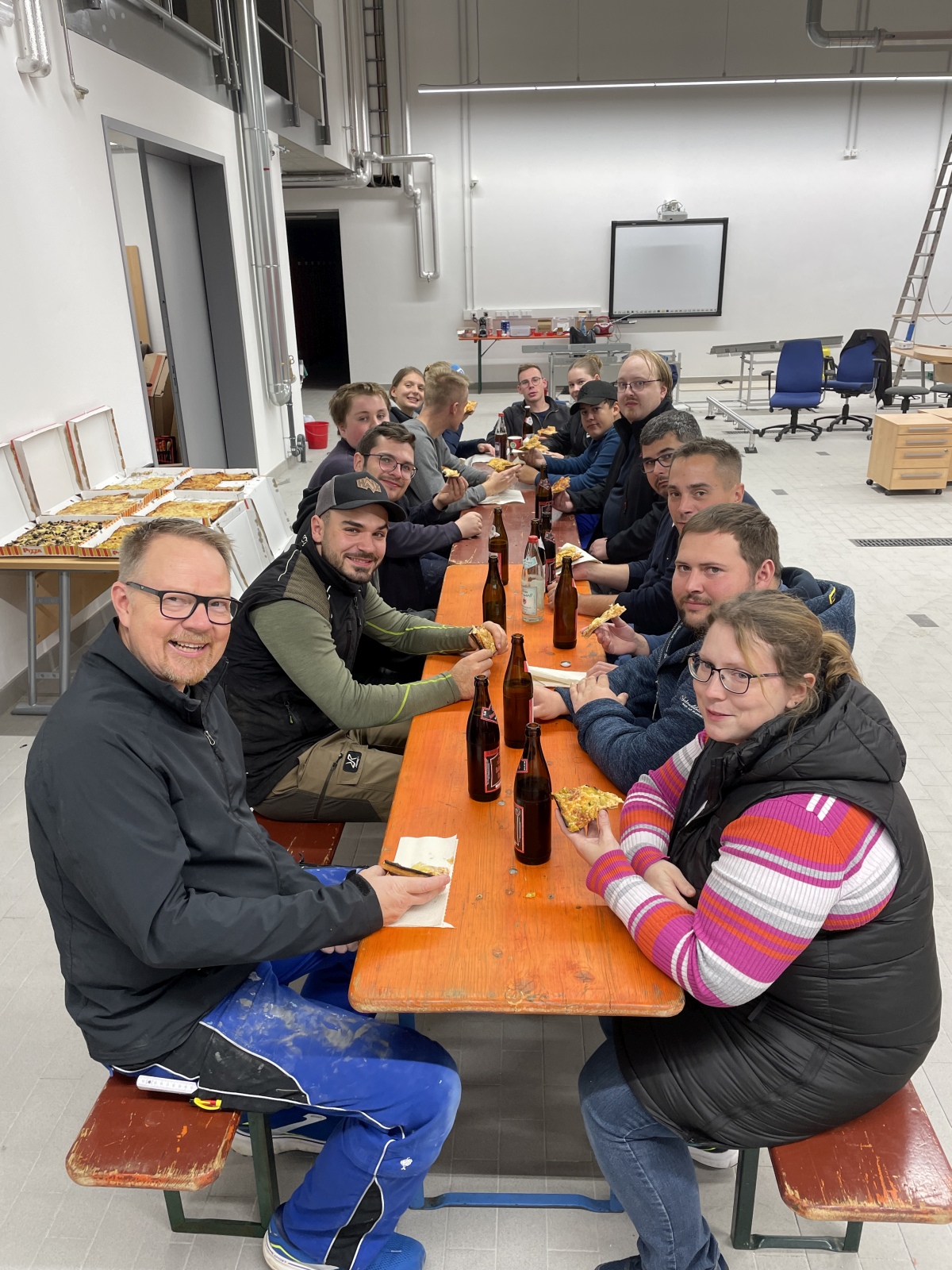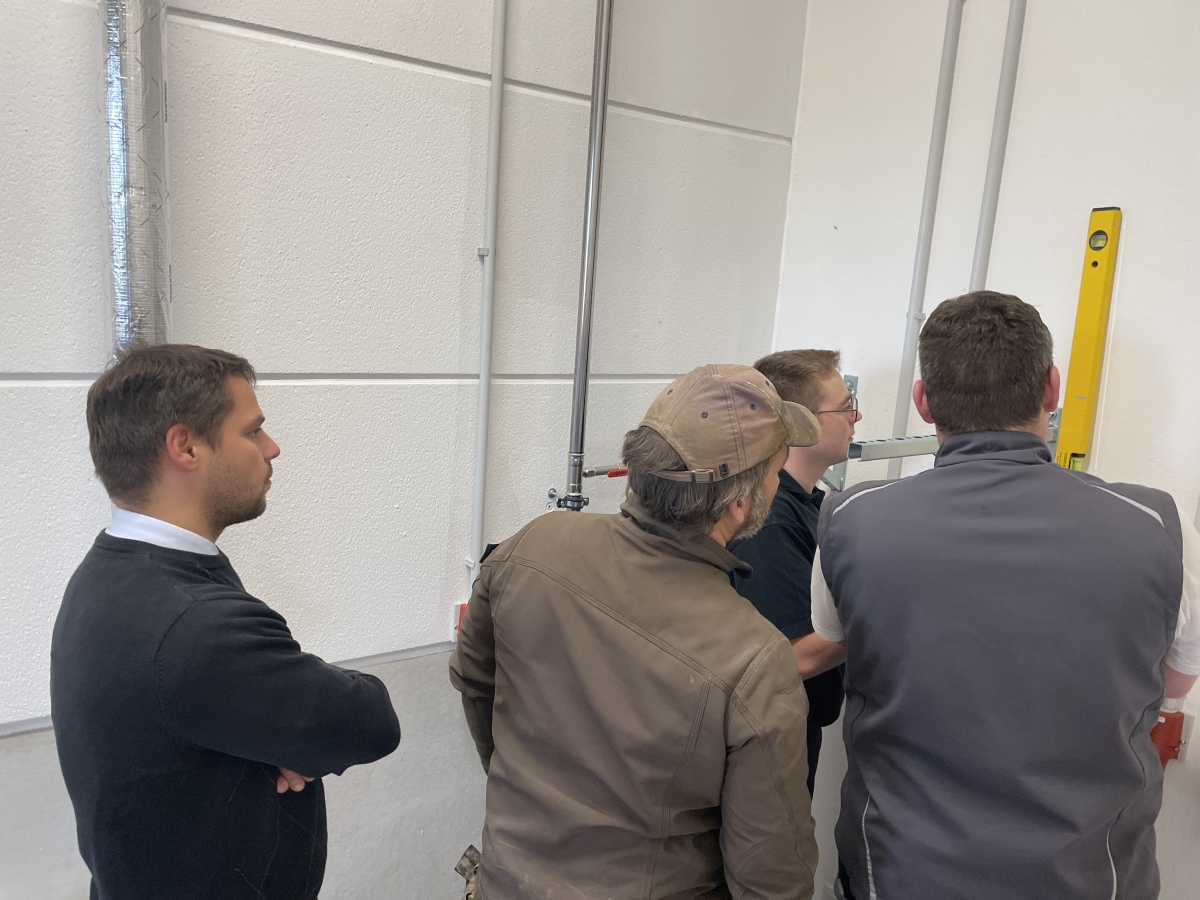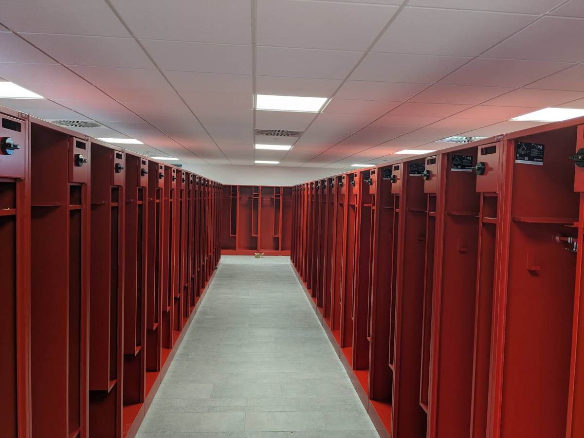 In rund 150 Arbeitsstunden wurden die Spinde in der Umkleide aufgestellt, das Büro eingerichtet, IT-Technik im Aussenbereich montiert, Regale aufgestellt und die Technik im Unterrichtsraum verbaut.