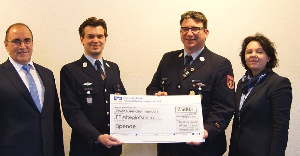 Im Rahmen der Spendenaktion für das neue Feuerwehrgerätehaus wurde unserem 1. Vorstand Fabian Nußer und unserem 1. Kommandanten Josef Steinberger ein Spendenscheck in Höhe von 2.500,00€ überreicht. Vielen herzlichen Dank an die Raiffeisenbank Alteglofsheim-Hagelstadt eG für die mehr als großzügige Spende und Unterstützung des Ehrenamts!!