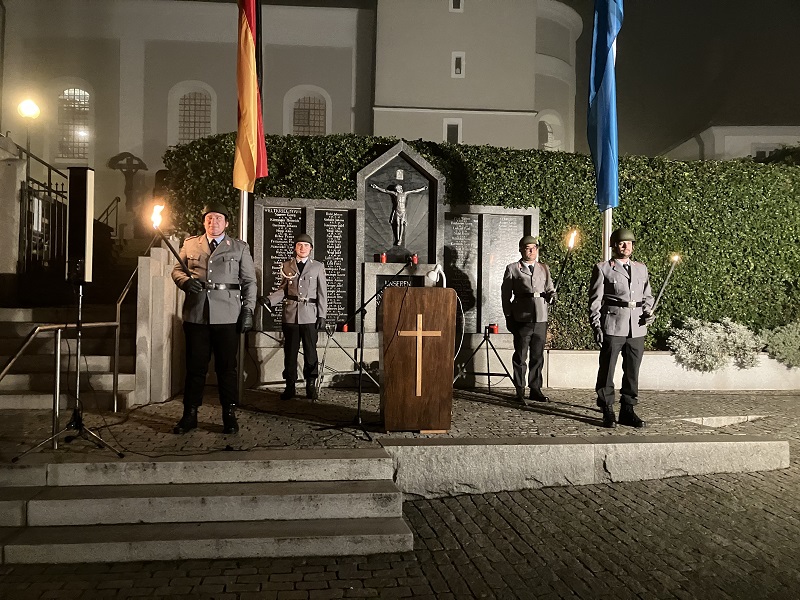 Mit unserer Vereinsfahne und einer Abordnung von aktiven, passiven und jugendlichen Mitgliedern beteiligten wir uns am Samstagabend an der kirchlichen Veranstaltung des Volkstauertags. Nach einem kurzen Vorabendgottesdienst fand anschließend am Kriegerdenkmal ein ehrendes Gedenken statt.